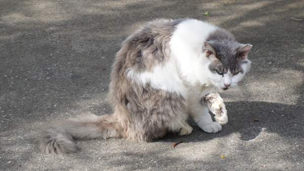 地域猫さんがいる休憩所があるのですが、写真撮ったら「ア゛ァ??!」と言わんばかりのこの表情……